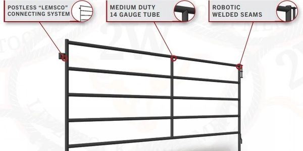 The 2W “Lemsco” Series Medium Duty Panels are a medium weight, postless panel that is designed primarily for perimeter panel applications. These panels are a popular choice of panel due to their wide range of uses which include pens, round pens, property fencing, and other medium stress cattle handling applications.